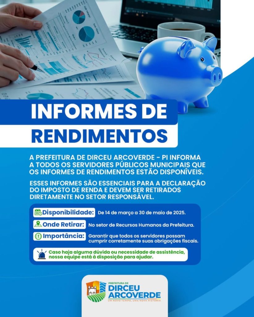 Os informes de rendimentos já estão disponíveis para retirada no setor de Recursos Humanos da Prefeitura. 📄✅ Esses documentos são essenciais para a declaração do Imposto de Renda, garantindo que você cumpra suas obrigações fiscais corretamente. Disponível até 30 de maio de 2025! Caso tenha dúvidas, nossa equipe está pronta para ajudar. 💙 InformeDeRendimentos #Transparência […]